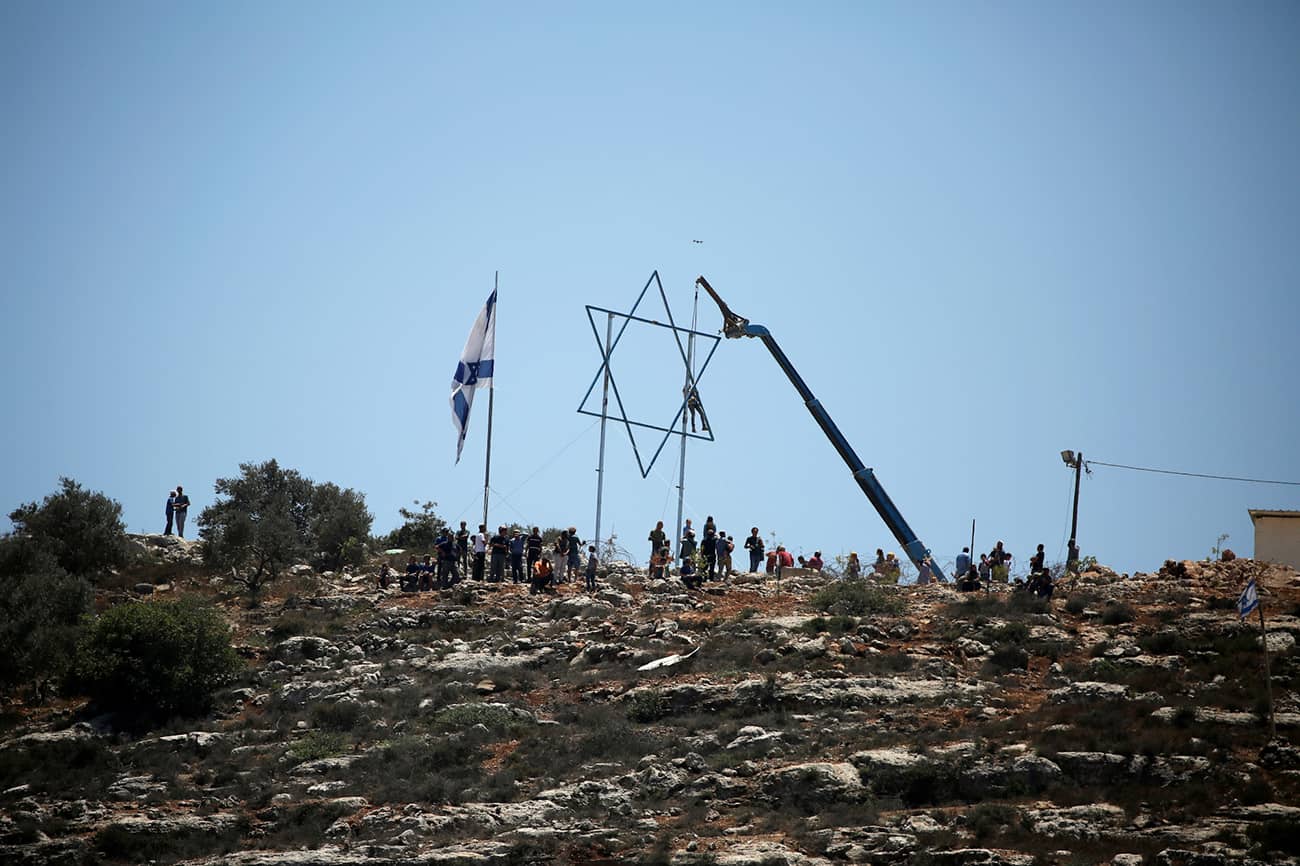 A third party is needed. Israeli settlers erect poles with the Star of David during a protest by Palestinians in the West Bank. Photo credit: REUTERS/Raneen Sawafta