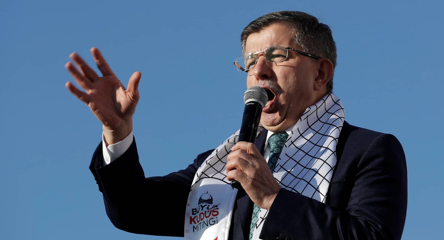 Ahmet Davutoğlu at a protest against Trump’s Middle East peace plan in Istanbul, February 2020. Photo credit: REUTERS.