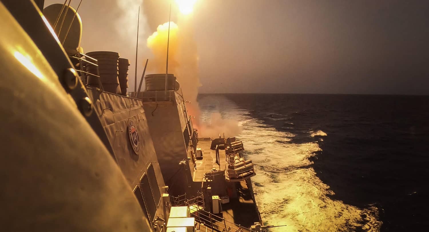 USS Carney (DDG 64) defeats a combination of Houthi missiles and unmanned aerial vehicles in the Red Sea, October 19, 2023. Photo Credit: U.S. Navy/Cover Images via Reuters Connect.