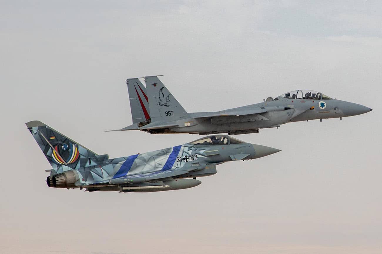 Israel’s and Germany’s air force chiefs fly together over Israel to kick off the Blue Flag 2021 exercise. Photo credit: Team Luftwaffe via EYEPRESS