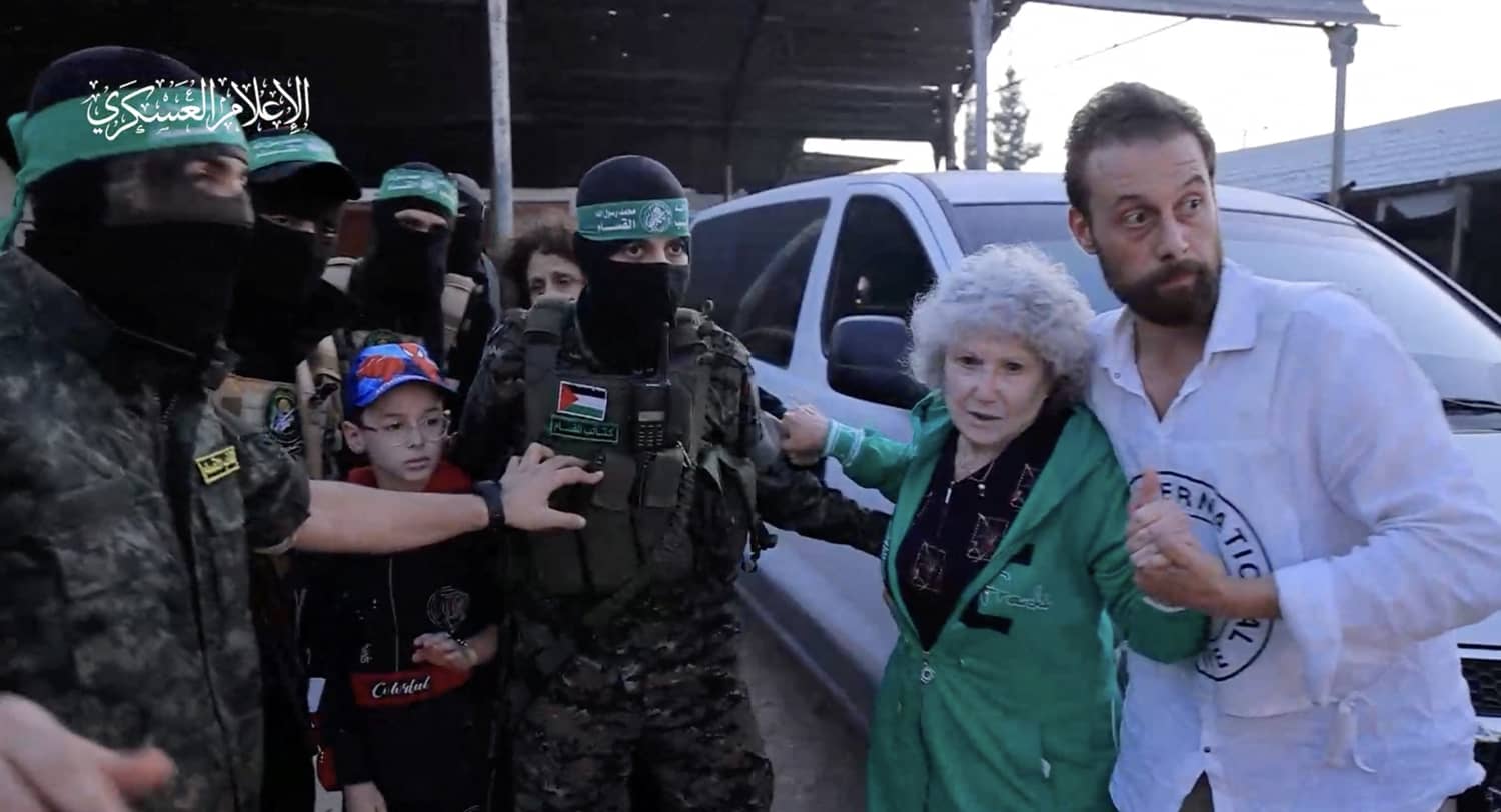 Israeli hostages abducted by Hamas are handed over to the International Red Cross on November 24, 2023. Photo credit: via REUTERS.