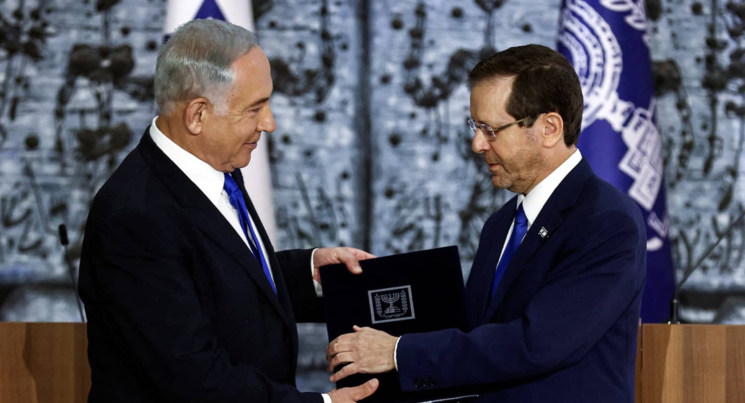 Israel President Isaac Herzog hands Benjamin Netanyahu the mandate to form a new government. Photo credit: REUTERS/Ronen Zvulun