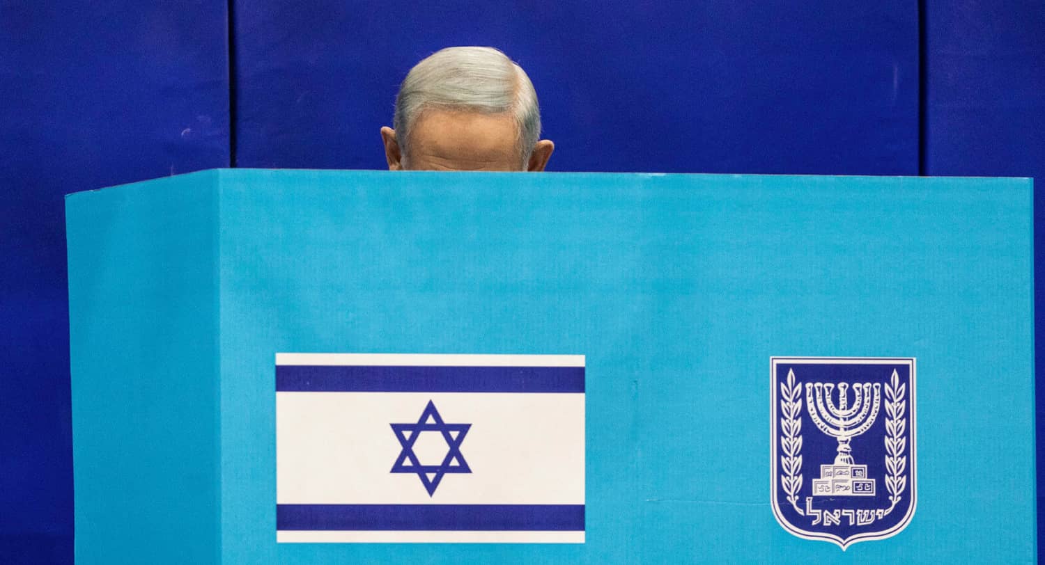 Likud party leader and former Israeli Prime Minister Benjamin Netanyahu casts his ballot at a polling station during the 2022 Israeli general election. Photo credit: Ilia Yefimovich/dpa