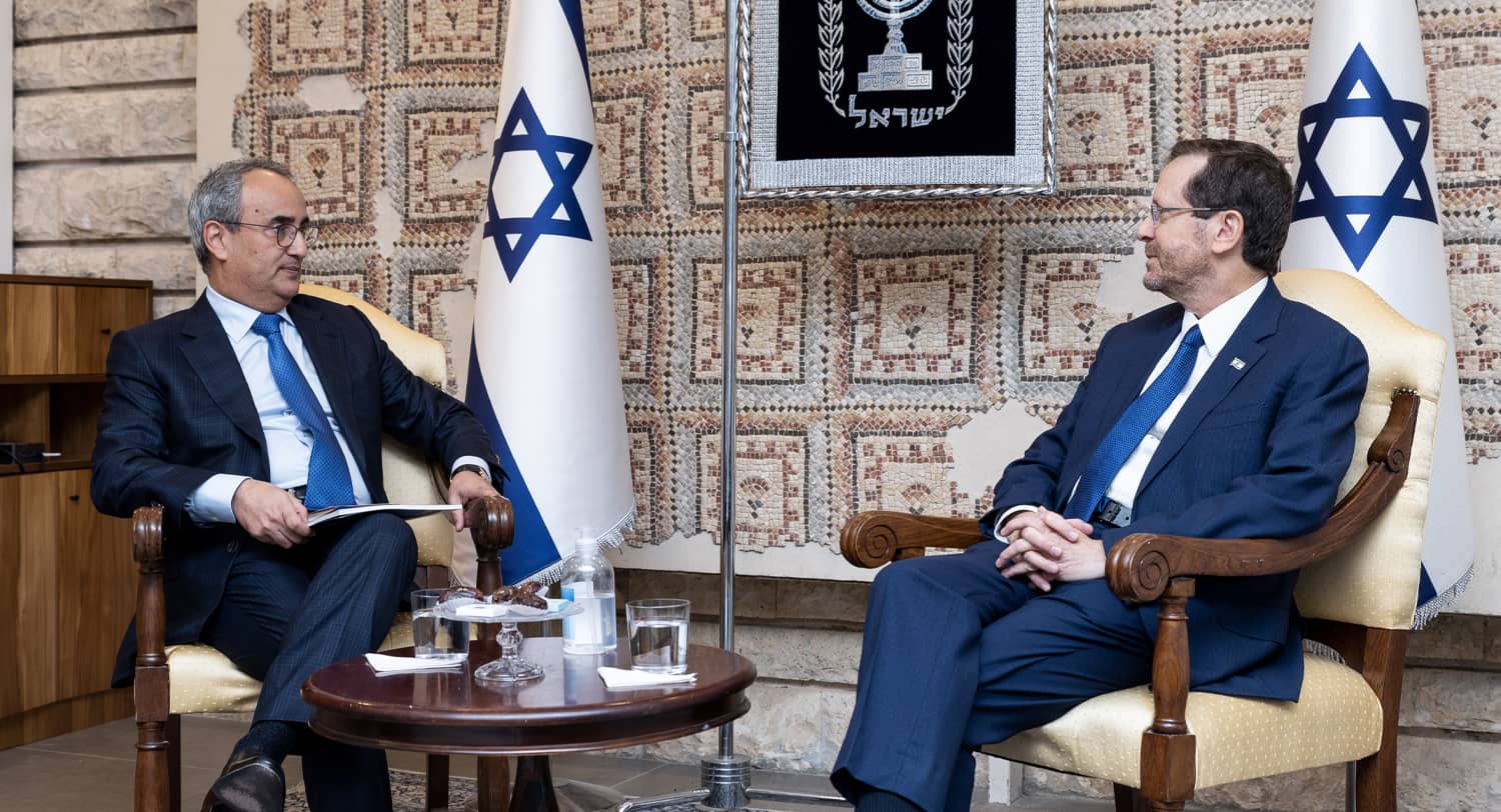 President of Israel Isaac Herzog (right) with JST publisher Ahmed Charai. Photo credit: Eran Ackerman